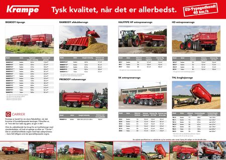 Robust konstruktion, brugervenligt design, gennemtænkte detaljer og lang levetid er blot nogle af fortrinnene ved Krampe. Uanset om du har behov for en volumentrailer med 50 m³ kapacitet, en frakørselsvogn med aflæsserbånd i bunden, en konventionel tipvogn, en stærk kroghejsevogn eller en entreprenørtrailer til hårdt arbejde, kan Krampe levere en suveræn løsning.